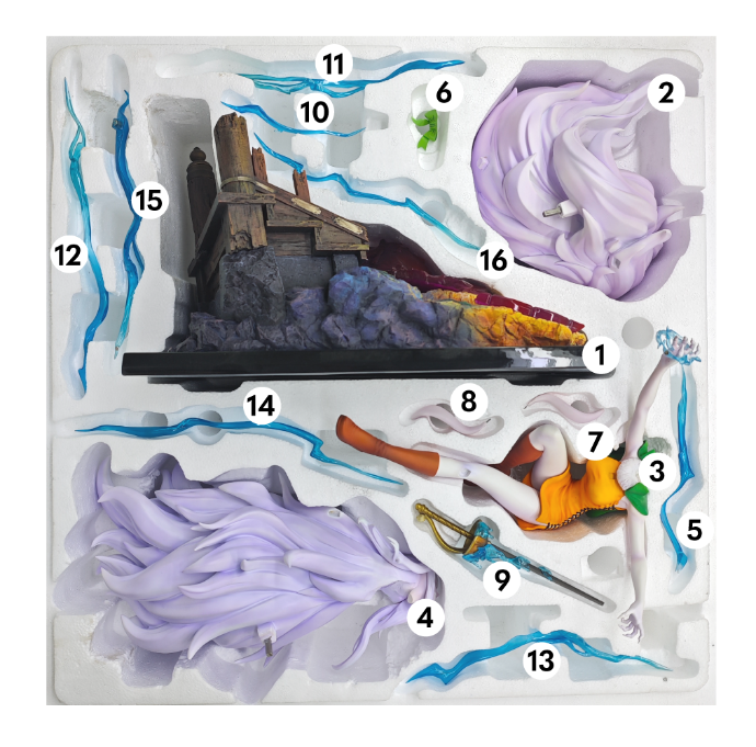 DE PRÉFÉRENCE, METTEZ DES GANTS EN LATEX POUR MANIPULER VOTRE STATUE. Vous pouvez monter cette statue seul.